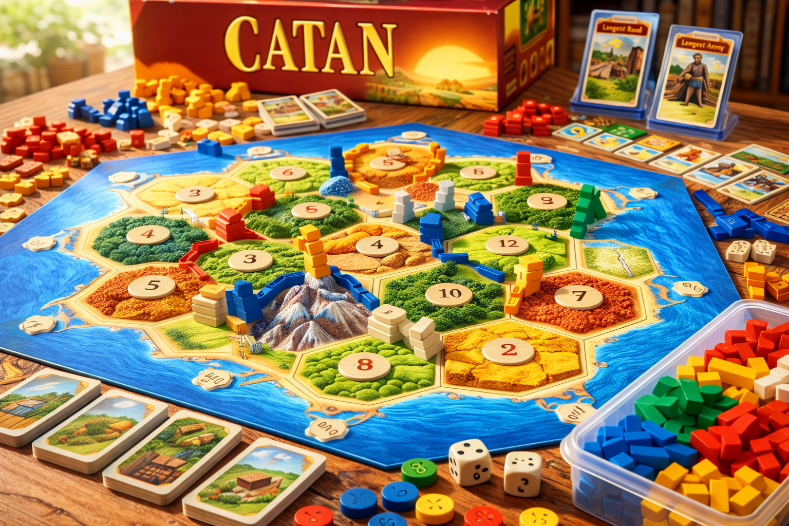 単純な運ゲームではなく、交渉や読み合いが重なっていくことで、遊ぶたびに違う展開が生まれるのもカタンの魅力だと思います。