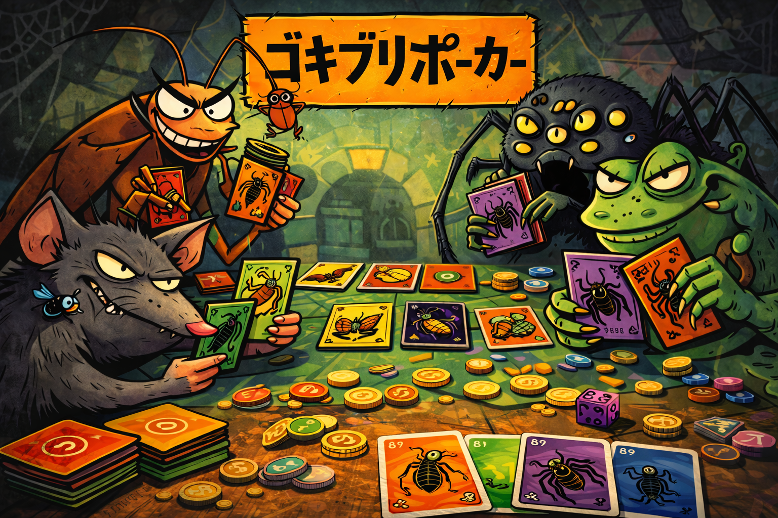 ゴキブリポーカーは、嫌な生き物カードを押し付け合う心理戦ゲームです。